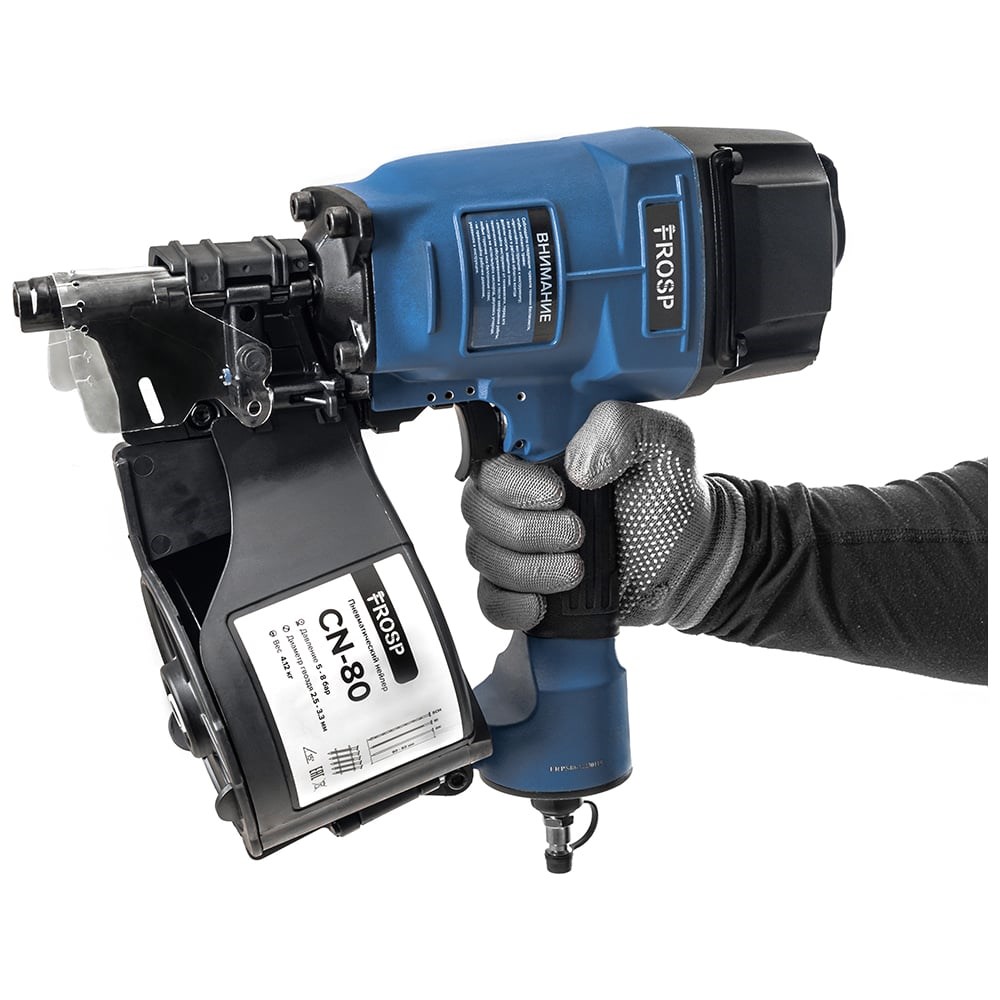 Гвоздезабивной пистолет FROSP CN-80 540 обладает высокой производительностью и скоростью работы. Широко используется в различных областях для соединения деревянных конструкций гвоздями барабанного типа. Магазин способен вместить до 300 шт. гвоздей. Угол наклона крепежа составляет 15°. Прочный корпус устойчив к механическим повреждениям. Обрезиненная рукоять обеспечивает надежный хват и препятствует скольжению. Скорость спуска - минимум 2 гвоздя в секунду.