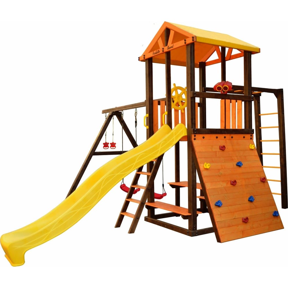 Игровой комплекс (ИК) Perfetto Sport «Bari-8» СГ000005009 изготовлен из отборного пиломатериала хвойных пород из северных регионов. За счет этого древесина имеет более плотные годичные кольца, что обеспечивает долговечность и устойчивость к внешней агрессивной среде, позволяя добиться высокого качества готовых изделий. Благодаря специальной конструкции, клееный брус имеет прекрасные прочностные характеристики, не дает усадки и не деформируется. Закругление кромок по четырём сторонам деталей снижает вероятность растрескивания детали, появления сколов, трещин и самое главное, повышает уровень травмобезопасности. Детали изготовлены по принципу конструктора - выпускаются полностью подготовленными к сборке, за счет этого установка не требует высокой квалификации сборщика, достаточно шуруповерта и инструкции. Для защиты древесины используется специализированная водная дисперсия акриловых смол последнего поколения, способная растягиваться после сушки на 200% без разрыва плёнки. Имеет повышенную морозостойкость до -50°С, что актуально для российского климата. Содержит специальные фунгицидные добавки (противогрибковая защита), разрешенные к применению в России и странах ЕС. Дополнительные характеристики: Высота - 3.23 м Скат горки - 3 м Высота горки - 1.5 м