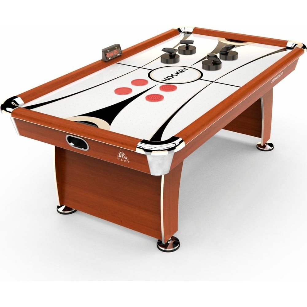 Игровой стол - аэрохоккей DFC BENEDOR AT-350 предназначен для домашнего использования. Он выполнен из дерева (МДФ) с нанесением защитного покрытия. Внутренние борта изготовлены из пластика для большей упругости отскока шайбы. Боковые стойки покрыты хромом. Благодаря двум мощным вентиляторам шайба скользит по поверхности, как по настоящему льду. В комплекте идут 4 биты и 4 шайбы. Особая конструкция биты позволяет удобно держать ее в руке как взрослым, так и детям.