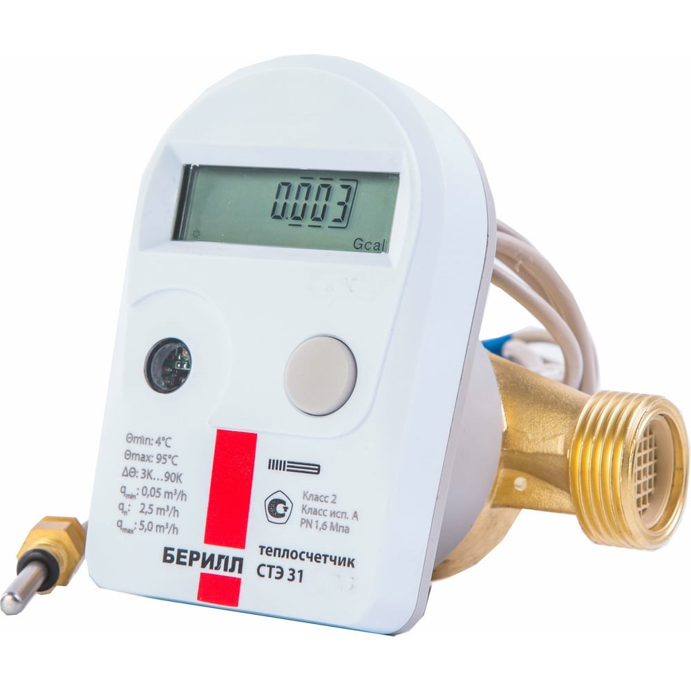 Теплосчетчик Ителма СТЭ 31 БЕРРИЛ импульсный, с КМЧ СТЭ имп. 15, Qn0,6 предназначен для измерения и регистрации переданной тепловой энергии (количества теплоты), объёма теплоносителя и других параметров теплоносителя в закрытых водяных системах отопления. Имеет два исполнения: для установки в подающий трубопровод, в обратный трубопровод. Три типоразмера с номинальным значением расхода – 0,6 м3/ч, 1,5 м3/ч, 2,5 м3/ч. Непосредственное визуальное отображение текущей и архивной информации потребления количества теплоты (удобный ЖК-индикатор большого размера). В счетчиках сохраняются и отображаются значения количества теплоты за последние 38 месяцев. Для интеграции в системы учета ресурсов (АСКУЭ) имеются варианты исполнения с импульсным выходом, M-bus шиной, RS 485, LoRaWAN или без внешнего интерфейса. Соответствуют техническим требованиям ГОСТ Р 1434-1-2011 «Теплосчетчики» и изготавливаются по техническим условиям ТУ 4218-003-17331698-2017.