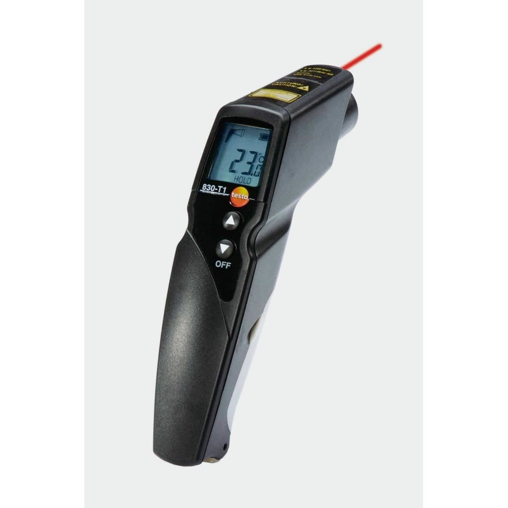 Инфракрасный термометр Testo 830-T1 с поверкой к0000013175 предназначен для бесконтактного измерения температуры поверхности. Оснащен лазерным целеуказателем. Есть возможность настройки коэффициента излучения от 0.1 до 1.0. Новый процессор обеспечивает большую точность. Предусмотрен оптимальный мониторинг предельных значений посредством функции "Мин./Макс.".