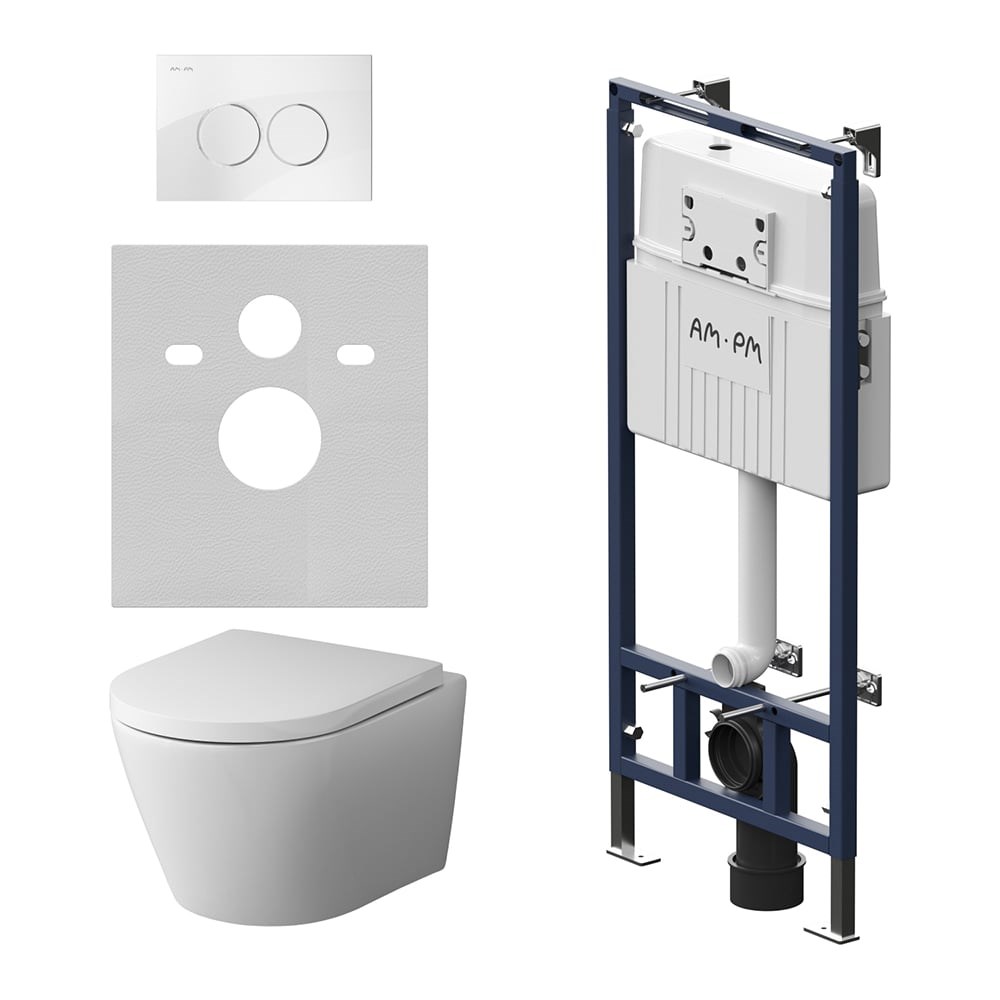 Инсталляция AM.PM IS100101.701700 MasterFit с клавишей L глянцевый белый, с подвесным унитазом Spirit V2.0 FlashClean,