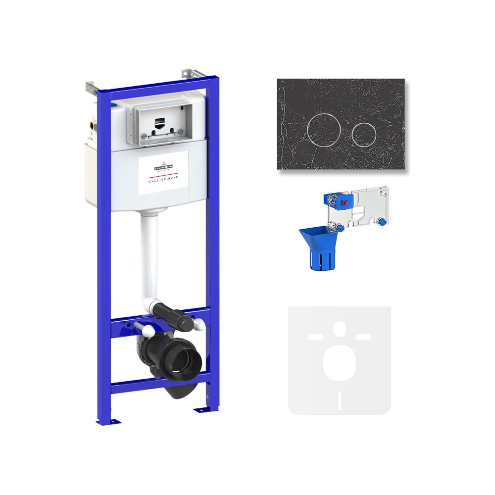 Готовое решение Lavinia Boho по специальной цене для монтажа любых подвесных унитазов. Универсальная инсталляция Единое инсталляционное решение для монтажа в любую типовую сантехническую шахту вне зависимости от расположения стояков, водопроводных труб и других инженерных коммуникаций. Инсталляционная система Lavinia Boho Relfix оснащена универсальным комплектом креплений, что позволяет производить не только стандартный «прямой» монтаж рамы к стене, но и в случае неровности стен осуществлять «поворотный» монтаж, вплоть до установки инсталляции в угол помещения. Бачок скрытого монтажа с латунными элементами Бачок скрытого монтажа, корпус которого изготовлен из долговечного полимерного материала HDPE, является цельнолитым (бесшовным). Наливной и сливной механизмы сертифицированы как I класс по французскому стандарту NF, обеспечивают бесперебойную работу смыва и самый низкий уровень шума в своем классе - 8.5 Db. Все пластмассовые компоненты бачка изготавливаются посредством литья под давлением и прессом, что позволяет получать сложные, функциональные и долговечные элементы. Все соединительные элементы для подключения инсталляционной системы к трубопроводу изготовлены из латуни. Звукоизоляционная панель Звукоизоляционная пластина для подвесной керамики Lavinia Boho RelFix позволит существенно снизить шум воды, сливаемой из бачка инсталляционной системы. Дополнительно, пластина станет амортизирующей прослойкой между керамикой и плиткой, защищая поверхности от повреждения. Шумоизоляция оснащена необходимыми универсальными монтажными отверстиями для легкой установки любой подвесной керамики. Уникальная клавиша смыва Дизайнерская клавиша смыва изготавливается из высококачественного кварцевого сплава и идеально имитирует натуральный камень. Панель вырезается из цельной трехметровой кварцевой плиты методом гидроабразивной резки с высокой скоростью и под высоким давлением. Цвет и фактура клавиши всегда неповторимы и лишь незначительно отличаются от изображения. Клавиши из кварца долговечны, устойчивы к механическим повреждениям, истиранию и царапинам; не подвержены разрушению от влаги и перепадов температуры; не обесцвечиваются при частой чистке. Ультратонкий монтаж и уникальные эксплуатационные свойства клавиши обеспечивают высокую эстетику, а также облегчают поддержание чистоты в туалете. Панель смыва минимально выступает за поверхность кафеля и относится к одним из самых тонких решений на рынке. Надежный механизм активации смыва рассчитан на 400.000 циклов (или 30 лет бесперебойной работы). Диспенсер для повышенной гигиены Диспенсер для освежающих и дезинфицирующих средств позволит обеспечить высокую гигиену унитаза и приятный аромат свежести в туалетной комнате. Дозатор предназначен для установки в сливной бачок инсталляционной системы и состоит из трех элементов: корзины, устанавливаемой в сливном бачке, емкости, в которую необходимо поместить туалетный блок и элемента, маскирующего плитку. Благодаря точной подгонке резервуара под туалетные блоки, при каждом смыве в бачок с водой поступает одинаковое количество дезинфицирующего средства, равномерно распределяемого по чаше унитаза. Идеальный результат смыва достигается за счет уникальной конструкции диспенсера, исключающего прилипание туалетных блоков к ег
