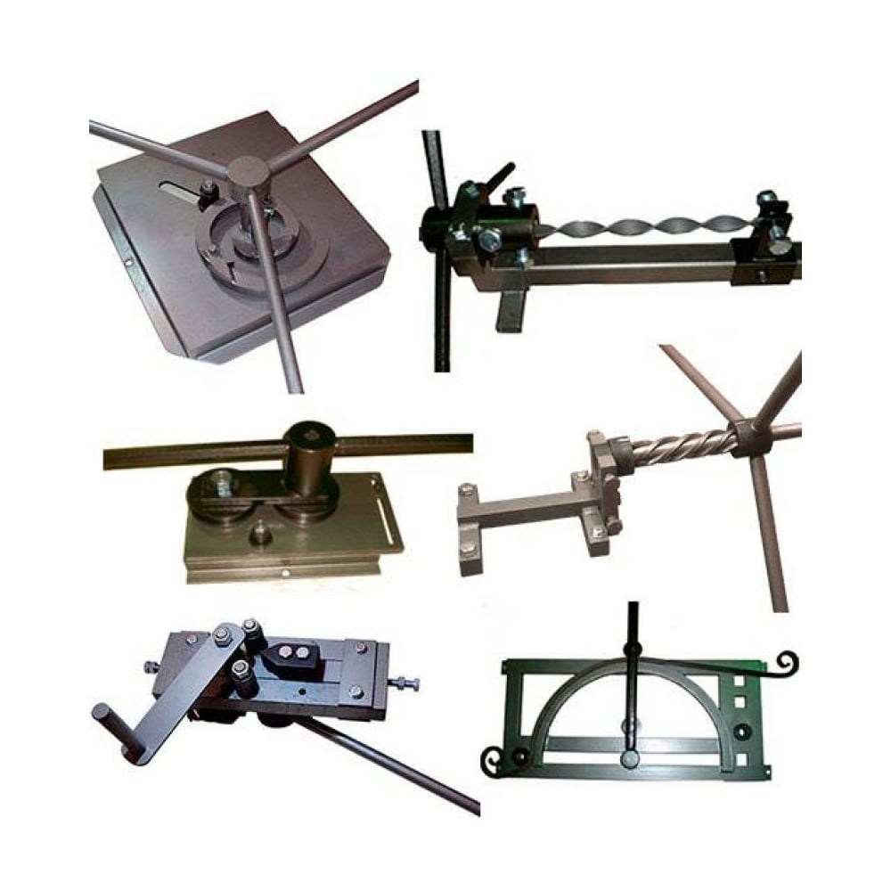 Инструмент AURA TOOLS Золотая шестерка 6500028 представляет собой стандартный комплект станков для холодной ковки. Набор позволяет обрабатывать полосы 4-6 мм, профили с квадратным сечением 10х10 и 12х12 мм. С помощью этого комплекта можно собирать большинство плоских узоров. При использовании станков "Объемник" и "Волна" совместно с "Гнутик" можно изготовить объемные и периодические решетки.