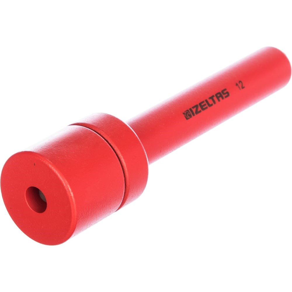 Инструмент для установки круглых люверсов диаметром 12мм IZELTAS 5710000012 состоит из двух частей Наковальня с отверстием Ø 12 мм, высотой 30 мм и весом 243 г Развольцовыватель длиной 150 мм и весом 417 г, длина рабочего штыря 25 мм. Обе части выполнены из высокопрочной стали марки 42CrMo4-41Cr4-4140-C60-CK60-CF53 Твёрдость стали 43-46 HRC, все нерабочие поверхности окрашены в красный цвет Благодаря небольшому весу и удобной ручке, установка люверсов выполняется проще и быстрее