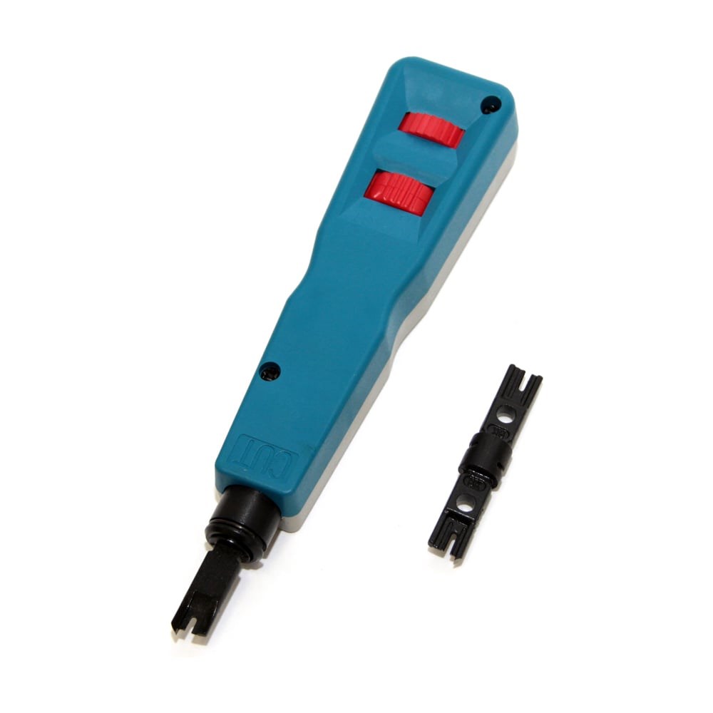 Инструмент для заделки витой пары 5bites для типа Krone 110 LY-3140N предназначен для забивки, заделки и обрезки проводников во врезные контакты (плинты, розеточные модули, патч-панели с IDC контактами типа krone/110). Имеются два сменных ножа в комплекте (отделение в ручке для хранения запасного ножа), регулировка ударного механизма.
