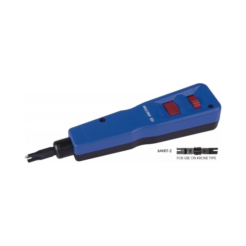 Инструмент для заделки проводов, тип KRONE, 170 мм KING TONY 6AH12 предназначен для установки кабеля на кроссах, патч-панелях, розетках и модулях, а также контактов. Приспособление пользуется большой популярностью среди электриков и автомехаников. Дополнительные данные: Тип лезвия - KRONE; Тип зажима - цанговый специальный; Материал рукояток - пластик марки ABS.