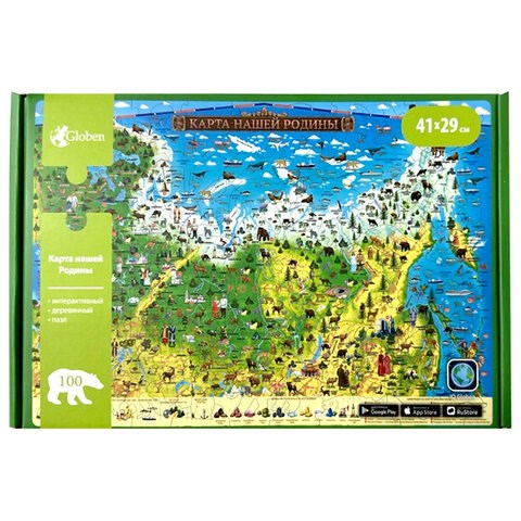 Интерактивная деревянная карта-пазл GLOBEN "Карта нашей Родины", 41х29 см, 100 элементов, PAG5206