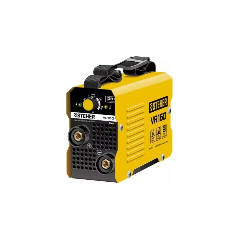 Сварочный инверторный аппарат STEHER 160 А, VR-160 обладает минимальным весом в серии. Это обеспечено небольшим инверторным блоком. Такой аппарат удобно использовать для небольших швов и кратковременных сварочных работ любой сложности. Прочный металлический корпус и удобный ремень облегчают транспортировку. Есть плавная регулировка. Минималистичная панель управления оснащена самым необходимым. Это позволяет быстро настроить параметры под конкретный тип и диаметр электродов. IGBT в сравнении со стандартной технологией обеспечивает следующие преимущества: плавная регулировка сварочного тока в широком диапазоне; малое потребление электроэнергии, высокий КПД; простота работы и высокое качество сварного шва; сварка различных металлов; меньшее количество силовых элементов (при той же мощности).