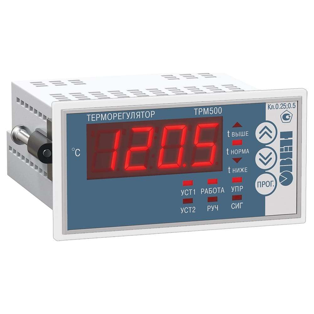 Измеритель-регулятор температуры ОВЕН ТРМ500-Щ2.5А артикул 00000092529 - промышленный терморегулятор, предназначенный для поддержания температуры в печах, термопластавтоматах, экструдерах, термопрессах, машинах для выдува ПЭТ-тары, гомогенизаторах, запайщиках, оборудовании для термоформинга и производства строительных материалов, сушилках и другом оборудовании, в работе которого требуется управление температурой.