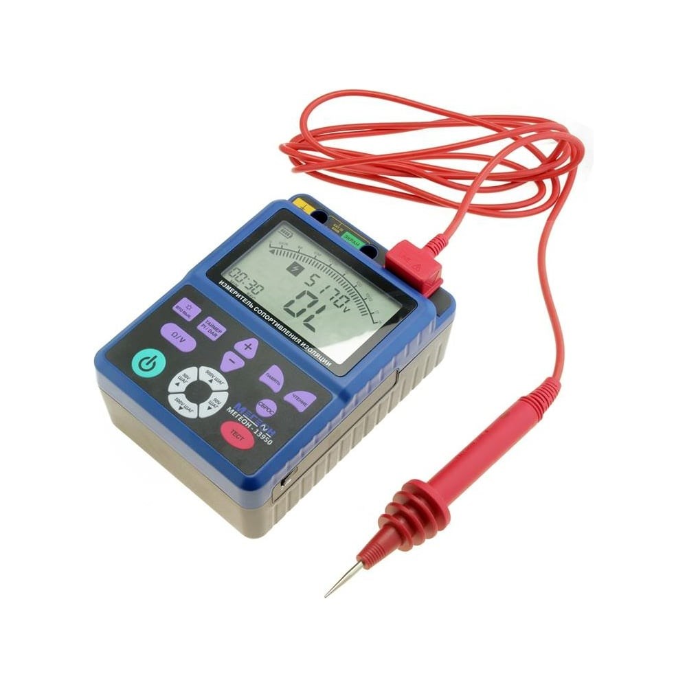 Измеритель сопротивления изоляции с поверкой - мегаомметр МЕГЕОН 13950 к0000021270 представляет собой портативный контрольно-измерительный прибор для проверки сопротивления изоляции. Для работы предусмотрено пять режимов измерения с автоматическими переключением пределов сопротивления и выключением испытательного напряжения по окончании измерения. Исследования сопровождаются визуальным оповещением при превышении предела диапазона измерения. При завершении проверки прибор самостоятельно разрядит проверяемую цепь с сопровождением визуальной и звуковой сигнализацией. Мегаомметр оснащен большим ЖК-дисплеем с интегрированной светодиодной подсветкой, что позволяет работать с прибором даже в темное время суток. На дисплей выводится вся необходимая информация – текущие показатели сопротивления и напряжения. Для сохранения уровня заряда элементов питания предусмотрена функция автовыключения питания. Мегаоометр внесен в государственный реестр СИ, под номером 74507-19, срок периодической поверки составляет два года.