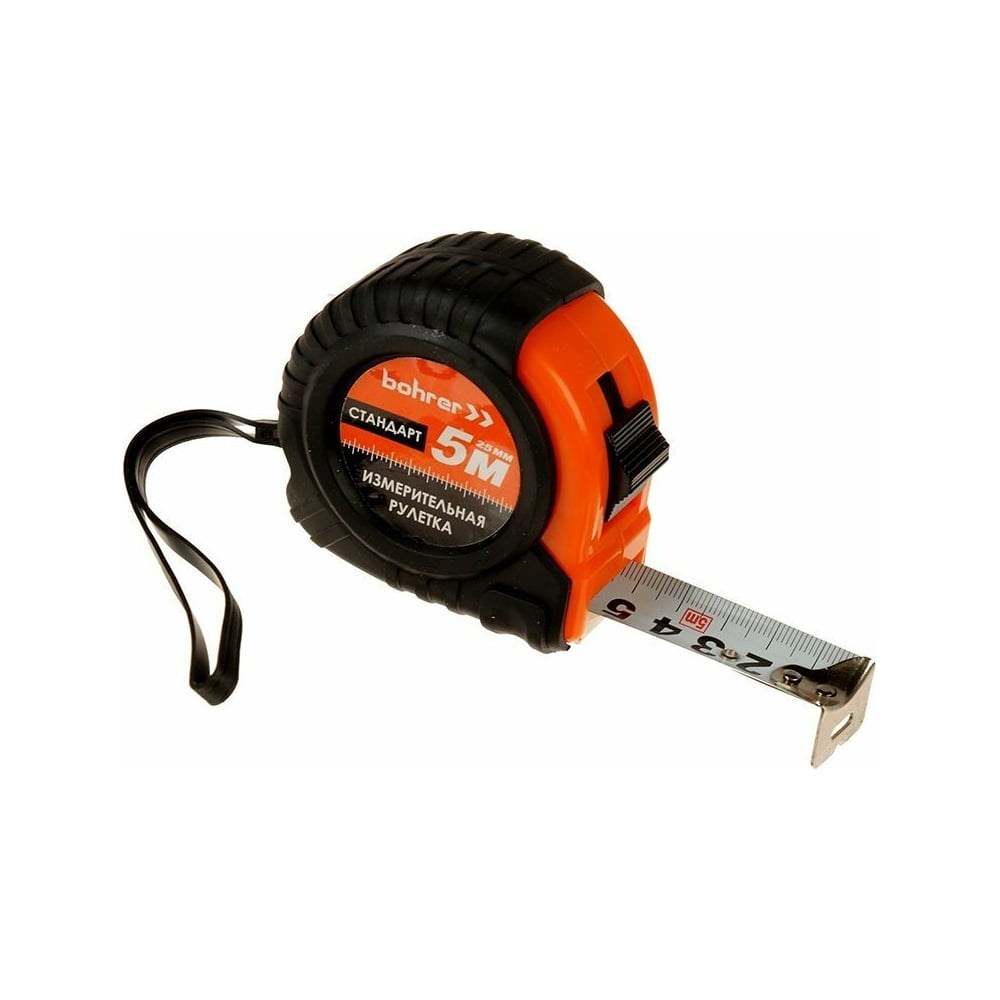 Измерительная рулетка BOHRER Стандарт 5 м, 25 мм, с фиксатором 41010525 предназначена для проведения замеров. Рулетка используется при ремонтных и монтажных работах в строительстве, производстве и бытовой сфере. Инструмент имеет стойкое к истиранию полотно, что увеличивает рабочий ресурс. Корпус выполнен из пластика и обрезинен для повышения ударопрочности. Для плавной фиксации полотна предусмотрены два независимых механизма.