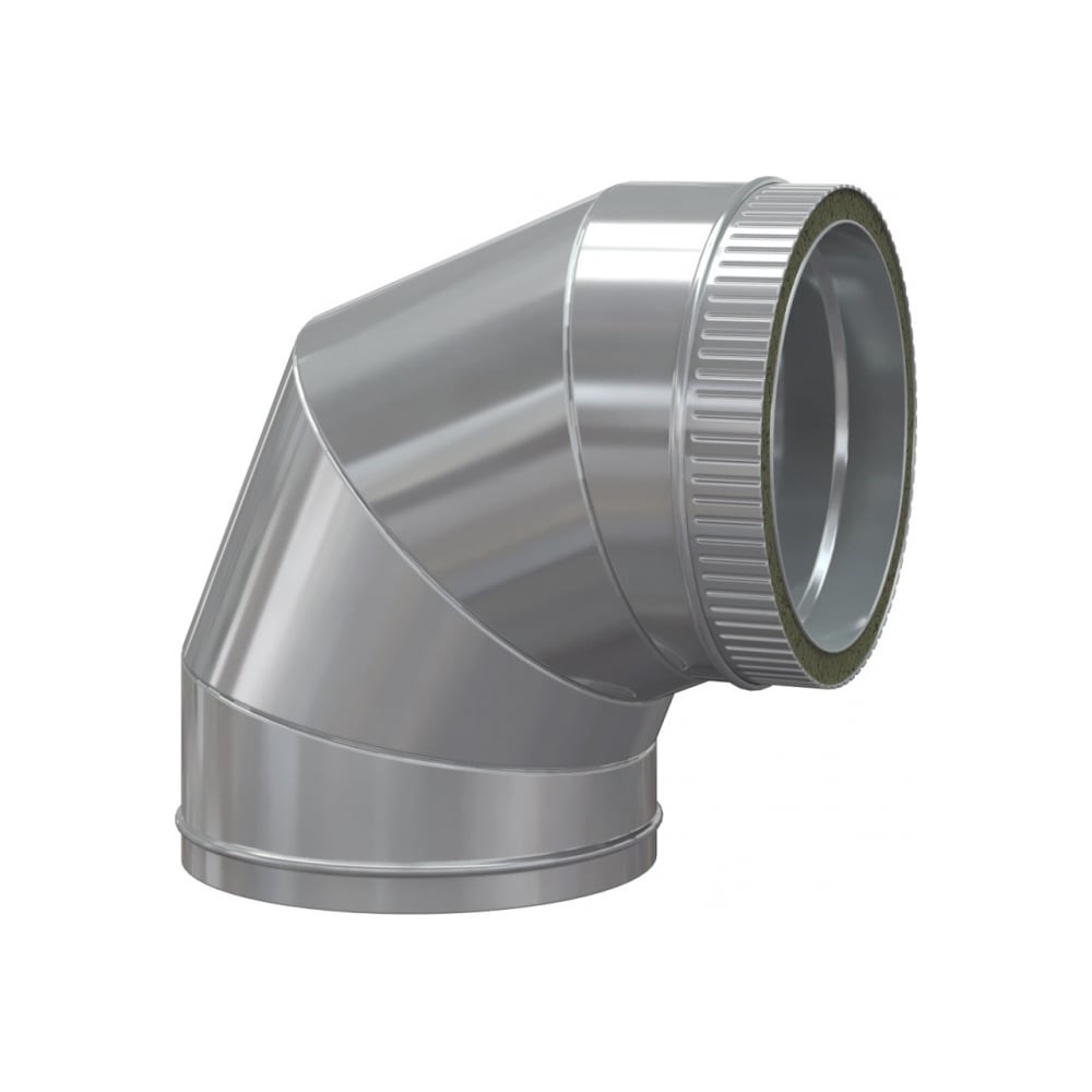 Отвод 90° двухконтурный, теплоизолированный из нержавеющей стали предназначен для изменения конфигурации дымохода в плоскости. Марка стали AISI304 внутренний контур. Марка стали AISI430 внешний контур. Изоляция. Материал - нержавеющая сталь. Цвет - хром. Форма - круглая.
