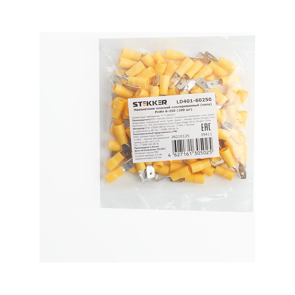 Изолированный плоский наконечник папа STEKKER РпИп 6-250, LD401-60250 ОПТ упаковка 100 шт 39411 служит для формирования изолированных разъемных соединений. Даёт возможность оперативного размыкания/ замыкания цепи, а также переключения различных контуров электрических схем в новые конфигурации.