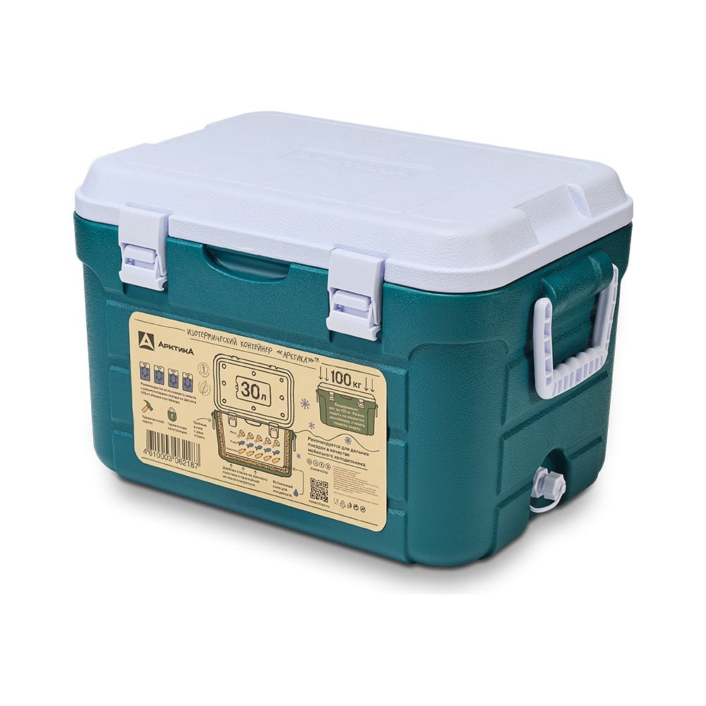 Изотермический контейнер-термобокс Арктика 30 л, аквамарин 2000-30/AQU можно захватить на пикник, рыбалку или в поездку. При использовании аккумуляторов холода содержимое бокса будет храниться в охлажденном виде на протяжении 120 часов. Корпус контейнера сделан из ударопрочного пластика, что снижает вероятность повреждения продуктов питания при перевозке в багажнике автомобиля. Для более удобной переноски изделия предусмотрены ручки с анатомическими изгибами.