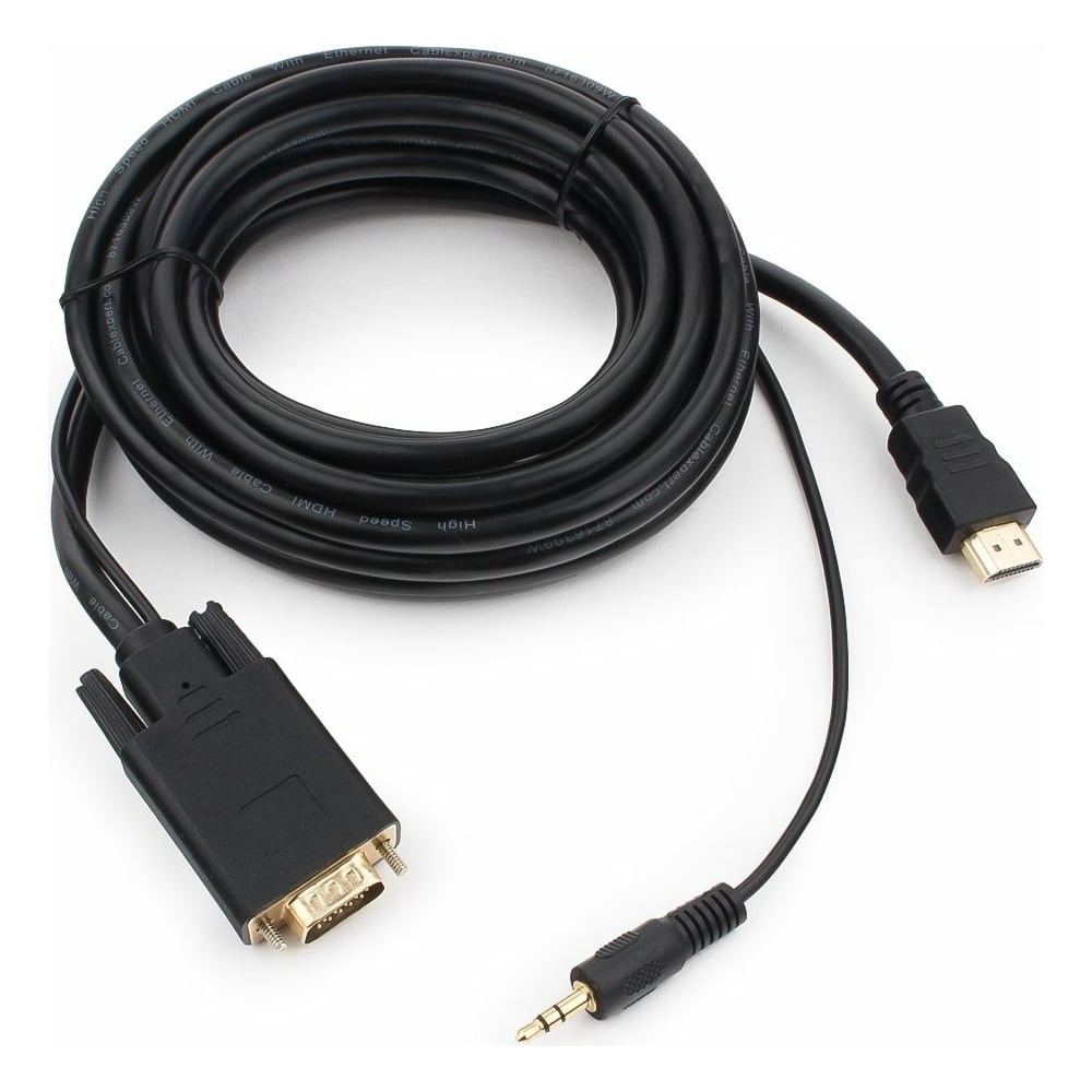 Дополнительные характеристики кабеля Cablexpert HDMI VGA A-HDMI-VGA-03-5M 19M/15M+3.5Jack 5м черный, позолоченные разъемы A-HDMI-VGA-03-5M: Кабель-адаптер для преобразования цифрового HDMI сигнала в аналоговый VGA. Для передачи звукового сигнала дополнительно снабжён аудиокабелем Jack 3,5 mm. Совместим с версией HDMI v.1.4.