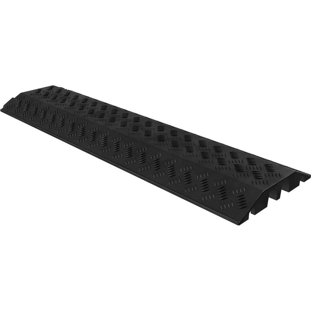 Кабель-канал дорожный резиновый - универсальное решение для прокладки проводов, шлангов и труб на улице и в помещениях. Подходит для парковок, складов, производственных помещений, строительных площадок и временных объектов.Кабель канал напольный выполнен из плотной резины, устойчивой к нагрузкам, погодным условиям и износу. Изделие выдерживает до 10 тонн нагрузки, что обеспечивает защиту от просадок и деформаций. Резиновые трапы устойчивы к механическим повреждениям, атмосферным осадкам, ультрафиолетовым лучам и температурным перепадам в диапазоне от -50°C до +60°C.Целостность конструкции гарантируется прочным соединением «шип-паз». Каналы рассчитаны на провода и шланги с сечением 32х35 мм и меньше.Изделие можно многократно использовать в качестве кабельного моста, лотка, трапа или защитного кожуха для коммуникаций. Оно обеспечивает безопасное перемещение людей и техники, защищая коммуникации и здоровье персонала. Конструкция подходит для инженерных коммуникаций, сценического оборудования, систем ЧПУ, поливочных шлангов, электропроводки.Черный кабель канал не скользит, легко укладывается и не требует дополнительного крепежаКоличество каналов: 2. Ширина канала сверху 32 мм. Ширина канала у основания 38 мм. Высота канала 35 мм.