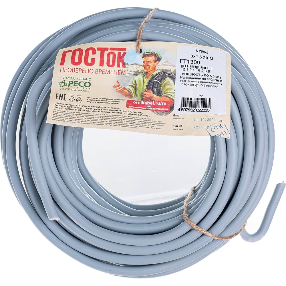 Кабель NYM-J ГОСТок 3х1.5 серый 20м ГТ1309