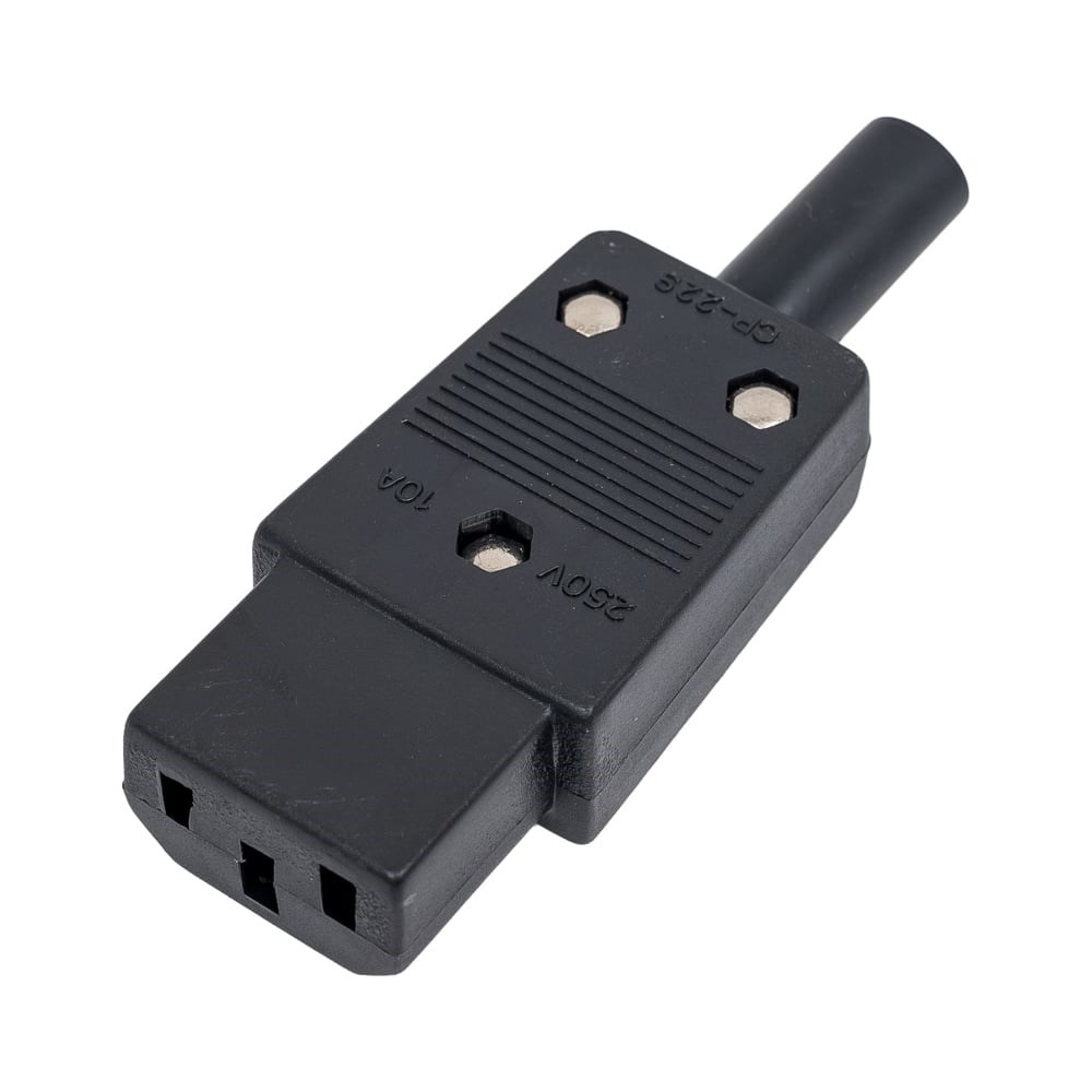 Cетевой штекер на шнур используется для подключения сетевого шнура к оборудованию. Гнездо шнуровое соединяется с кабелем любым удобным способом (скрутка, зажимы, клеммы). Имеет три контакта: ноль, фаза и заземление, к которым с одной стороны крепится сетевой шнур, а с другой — подсоединяется к оборудованию.