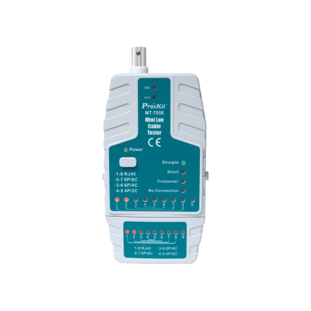 Кабельный тестер ProsKit MT-7058 00284942 отличается компактными размерами. Предназначен для проверки и выявления неисправностей, как обрывы, скрещивание, расщепление пар и т.д. Подходит для LAN-кабелей, RJ45 TIA568A / B (AT & T) 258A), 10 Base-T, Token Ring, RJ-11/RJ-12 USOC и коаксиальный кабель BNC. Прибор имеет функцию автоматического отключения питания для сохранения заряда.