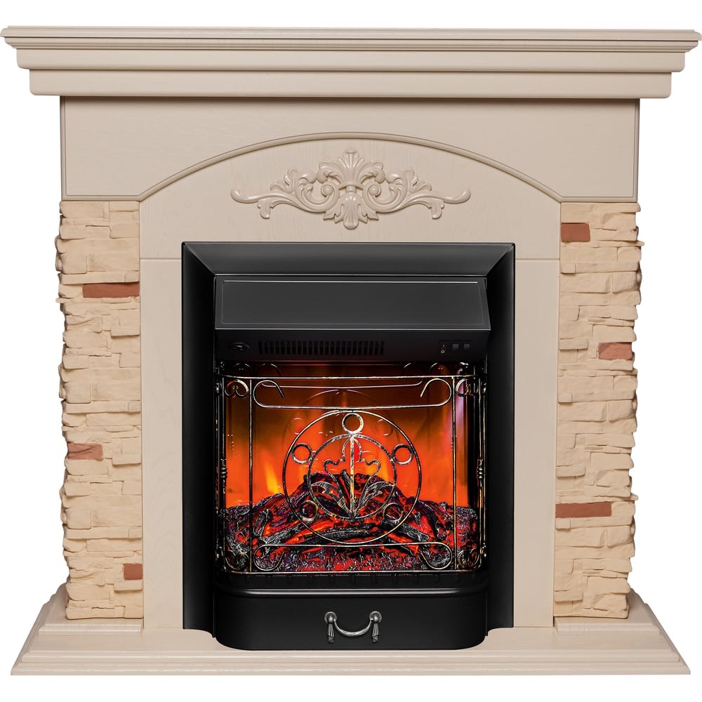 Каминокомплект RealFlame NEAPOLIS STD/EUG WT+ MAJESTIC-S LUX BL - выполнен в традиционном стиле, изготовлен из высококачественных материалов - шпонированного МДФ и искусственного камня.Классический дизайн, гармоничное сочетание скалистого камня и древесных элементов позволят вписать его в большинство интерьеров, а нежный светлый оттенок обрамления привнесет в интерьер природное тепло и уют, будь то загородный дом или квартира.Электроочаг Majestic BL выполнен в стиле классической дровяной топки. Он подходит как для самостоятельного встраивания в стенную нишу так и для установки в каминный портал. Муляж дров выполнен в виде точной копии тлеющих углей и небольших поленьев.Благодаря задней зеркальной стенке проекция пламени смотрится более выразительно и эффектно. Изюминкой очага является ажурная кованая решетка. Она придает ему вид изысканной старины и делает камин центром любого интерьера.Очаг с функцией обогрева. Мощность обогрева: 0,75/1,5 кВтЗащита от перегрева Регулировка яркости пламени Звуковой эффект
