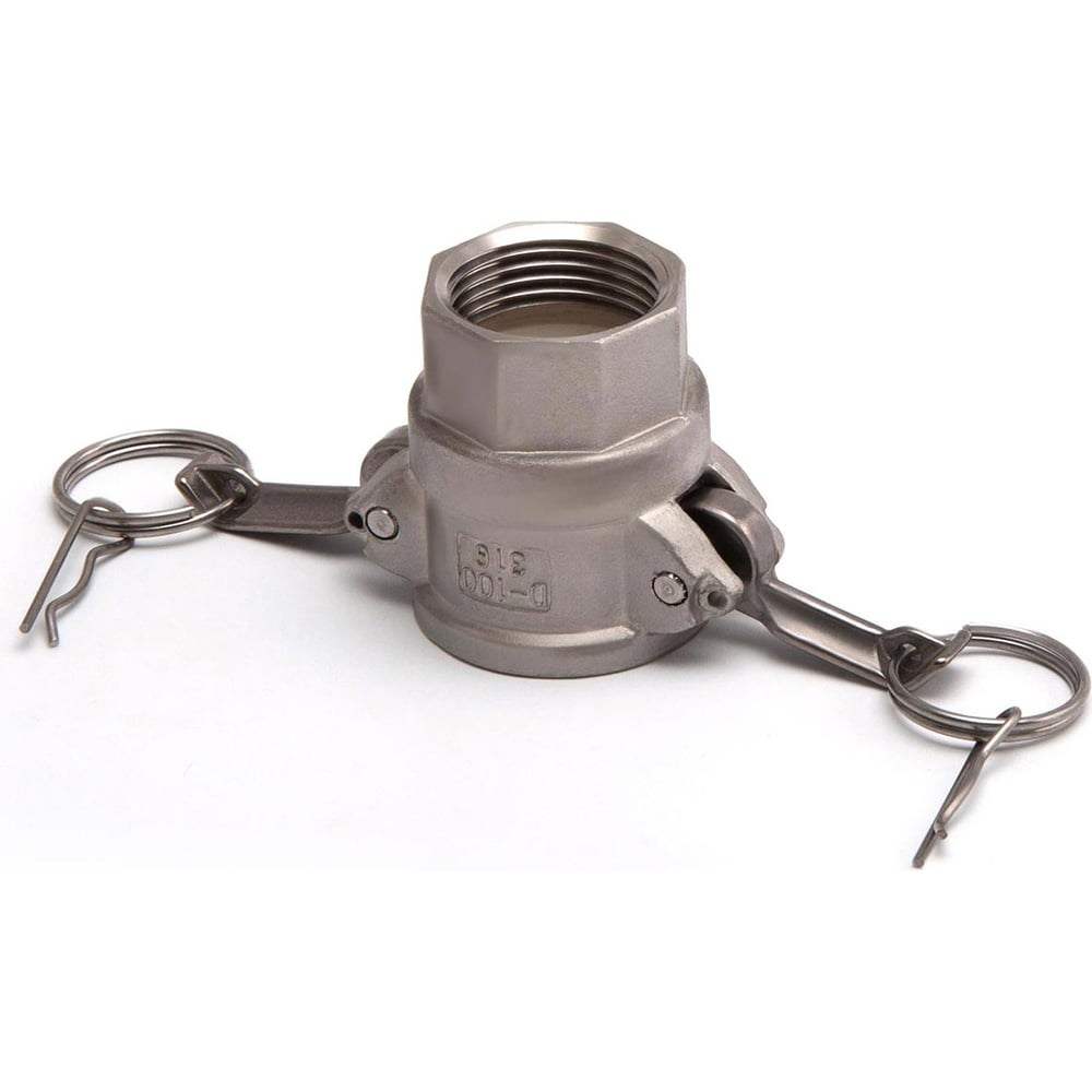 Тип камлока - муфта с внутренней резьбой и приёмной частью "мама" с фиксаторами кулачкового типа.Вид резьбы: дюймовая трубная цилиндрическая G (BSPP)Материал уплотнения для стороны с приёмной частью "мама": кольцо прямоугольного сечения из силиконаМатериал уплотнения для стороны с внутренней резьбой: кольцо прямоугольного сечения из силиконаМатериал корпуса: нержавеющая сталь AISI 316 - это сталь AISI 304, улучшенная путём добавления молибдена и никеля. Благодаря молибдену данная сталь немагнитна, особенно устойчива к коррозии, высоким температурам и агрессивным средам (серная, фосфорная, борная, муравьиная, уксусная, щавелевая, молочная и прочие кислоты)Материал кулачков: нержавеющая стальНоминальное рабочее давление: 20 барРабочая температура уплотнения: от -60°C до +200°CРабочая температура камлока: от -65°C до +260°C