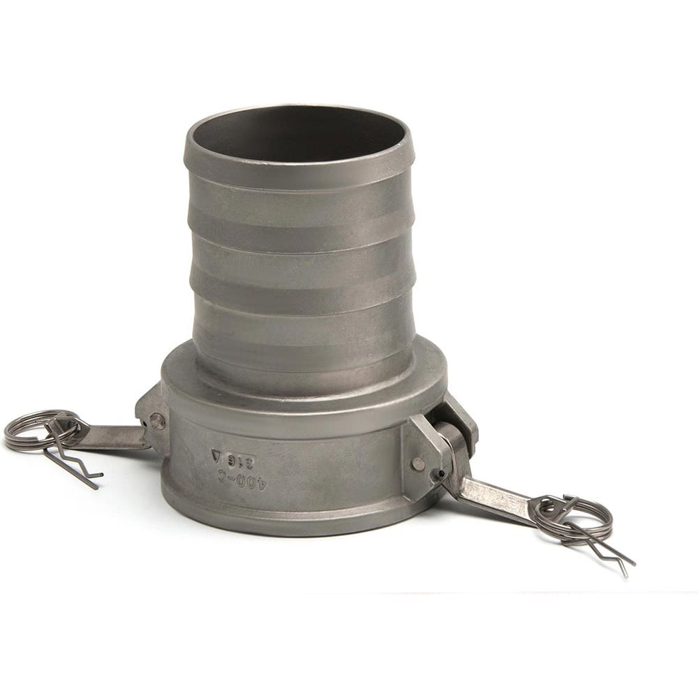 С: тип камлока - муфта со штуцером типа "ёлочка" и приёмной частью "мама" с фиксаторами кулачкового типа 400: условное обозначение диаметра камлока 4": внутренний диаметр трубы (условный проход трубы). Соответствует 100 мм. Материал уплотнения для стороны с приёмной частью "мама": кольцо прямоугольного сечения из силикона Материал корпуса: нержавеющая сталь AISI 316 - это сталь AISI 304, улучшенная путём добавления молибдена и никеля. Благодаря молибдену данная сталь немагнитна, особенно устойчива к коррозии, высоким температурам и агрессивным средам (серная, фосфорная, борная, муравьиная, уксусная, щавелевая, молочная и прочие кислоты) Материал кулачков: нержавеющая сталь Номинальное рабочее давление: 10 бар Рабочая температура уплотнения: от -60°C до +200°C Рабочая температура камлока: от -65°C до +260°C Страна происхождения: Китай Продукция не подлежит обязательной сертификации