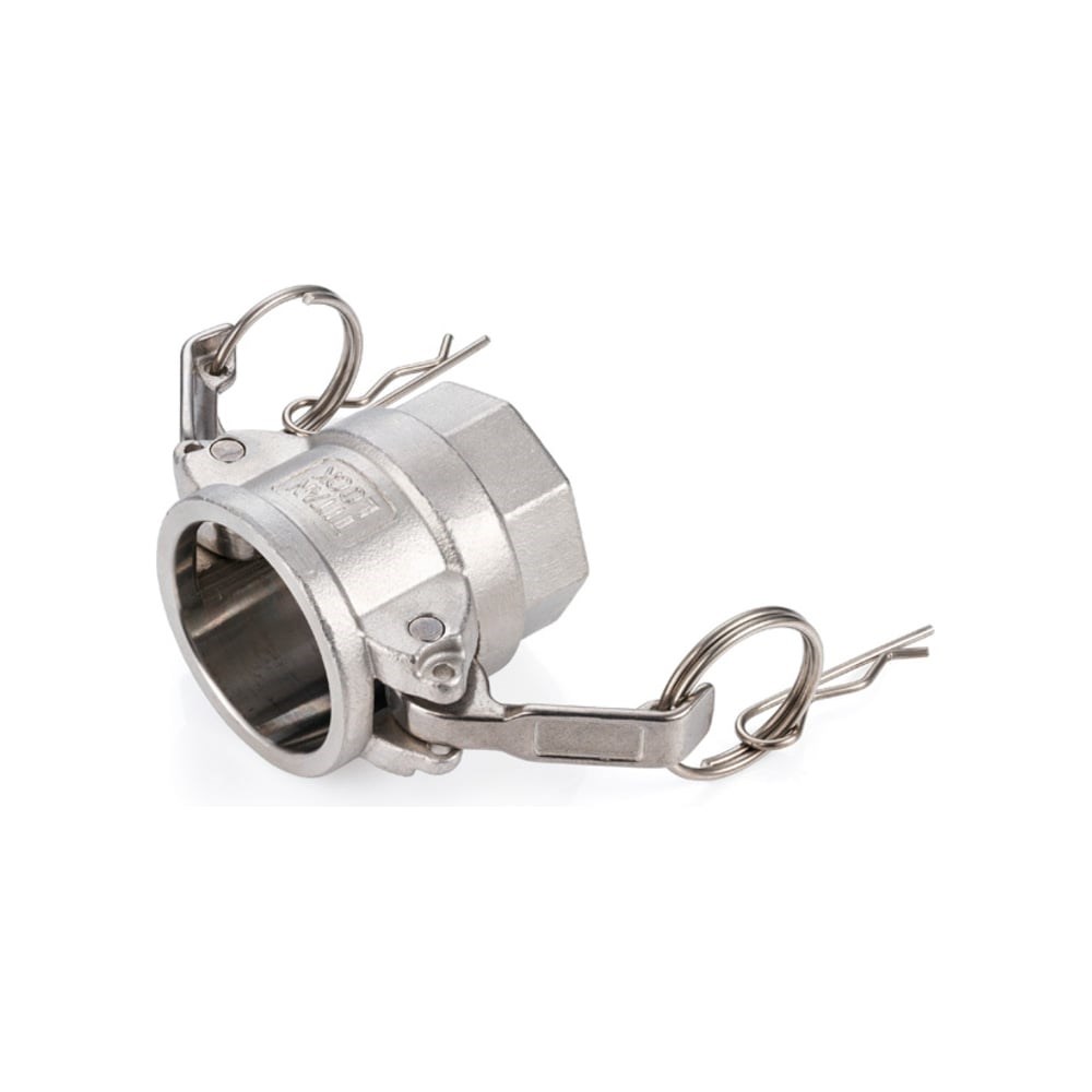 Нержавеющий камлок тип D является приемной частью (розетка"мама") кулачкового соединения Camlock с внутренней резьбой BSP. Имеет фиксирующие ручки кулачкового типа, уплотнение из NBR, а также уплотнение из NBR в резьбовой части.