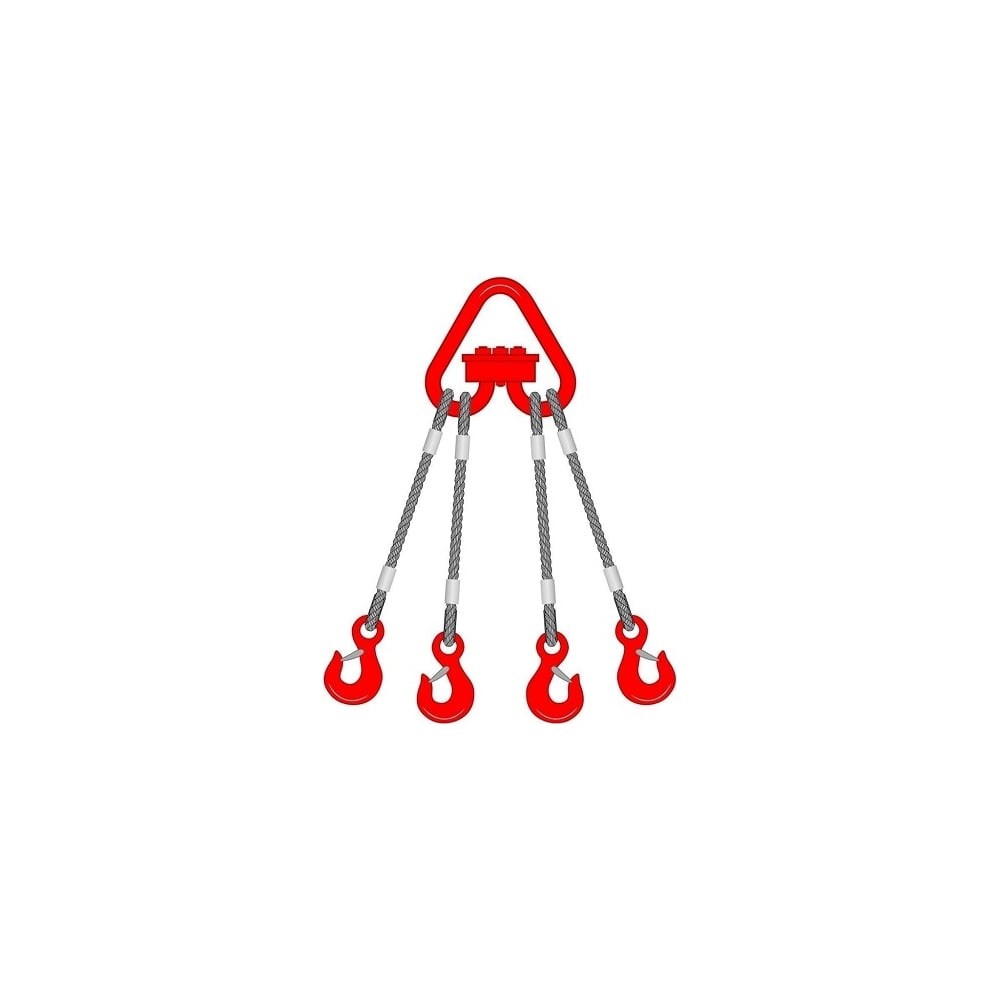 Канатные стропы 4СК представляют собой конструкцию в которой, треугольное звено, четыре ветви канатов с крюками на концах. Такое строение дало название оборудованию 4СК, или четырехветвевой строп паук. Четыре ветви придают оборудованию такое свойство, как высокая грузоподъемность, что отличает модификацию строп от аналогов с одной, двумя или тремя ветвями. Четырехветвевой строп устроен так, что при подъеме груза и его транспортировке используется четыре крепежных точки. Потому такое устройство широко используется на стройке и подходит для крепления строп к таким элементам, как блоки, плиты, панели, у которых предусмотрены специальные проушины, к которым можно прикрепиться.Имеют высокий коэффициент прочности и долговечности. Стальные канаты могут без труда перемещать грузы со значительным весом и габаритами.