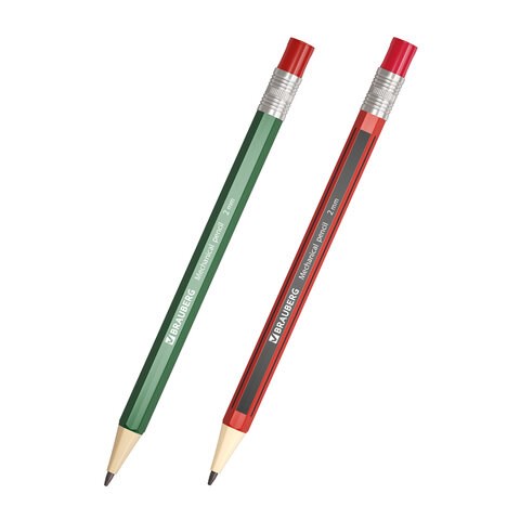 Карандаш механический цанговый 2 мм, BRAUBERG STYLE, HB, встроенная точилка, корпус ассорти, 181960