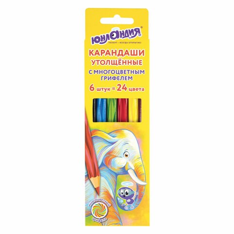 Карандаши с многоцветным грифелем ЮНЛАНДИЯ MAGIC, НАБОР 6 штук, 24 цвета, шестигранные, утолщенный грифель 5 мм, натуральное дерево, 181791