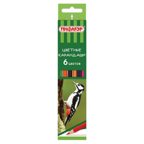 Карандаши цветные ПИФАГОР "ЛЕСНЫЕ ЖИТЕЛИ", 6 цветов, шестигранные, 181333