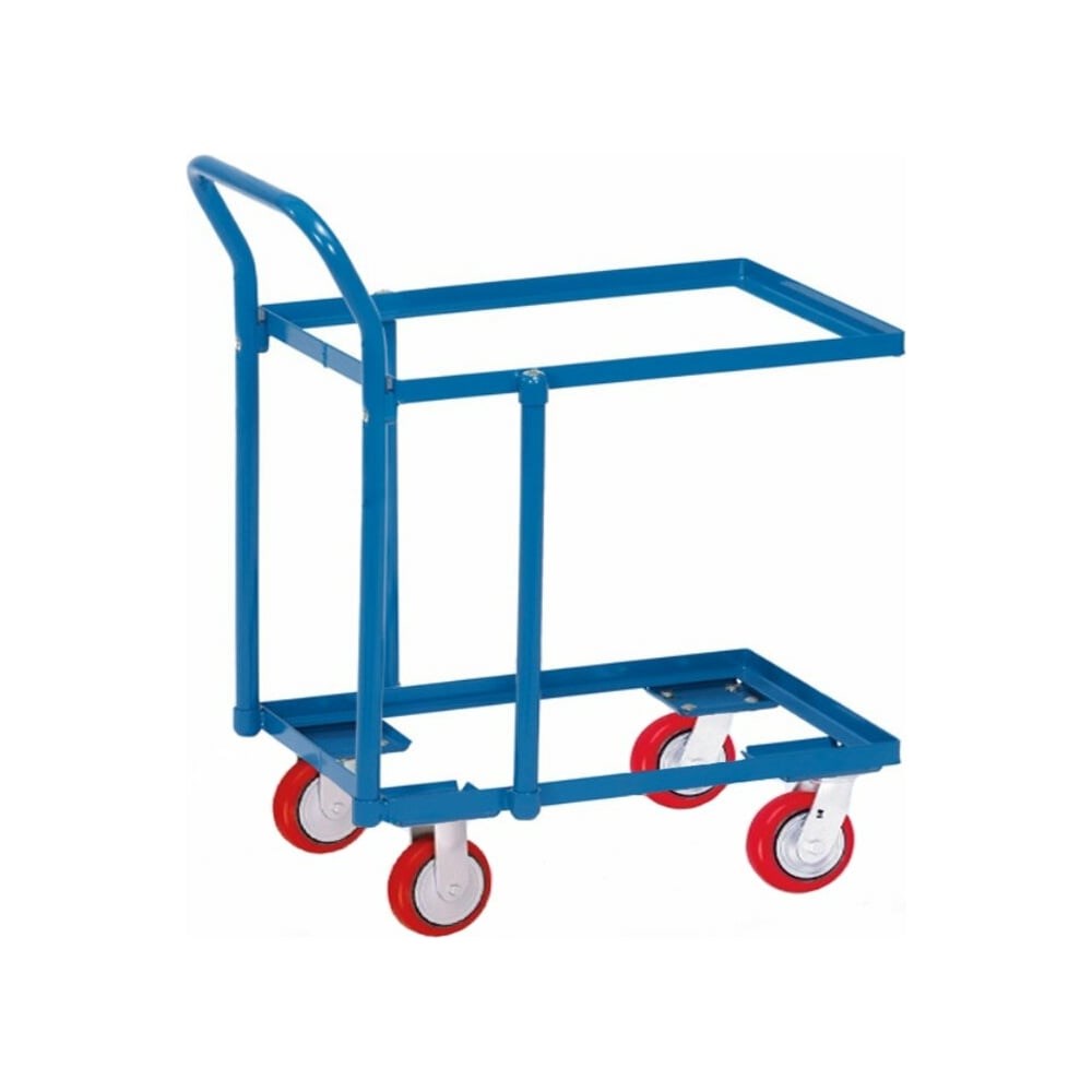 Каркасная 2-х ярусная тележка для евробокса МосТележка 420x620 ТКЕ2-6242 легка и проста в применении. Идеально подходит для перевозки евробоксов, ящиков, коробов или лотков на складах, в торговых залах, на производстве.