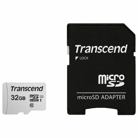 Карта памяти microSDHC 32 GB TRANSCEND UHS-I U3, 95 Мб/сек (class 10), адаптер, TS32GUSD300S-A