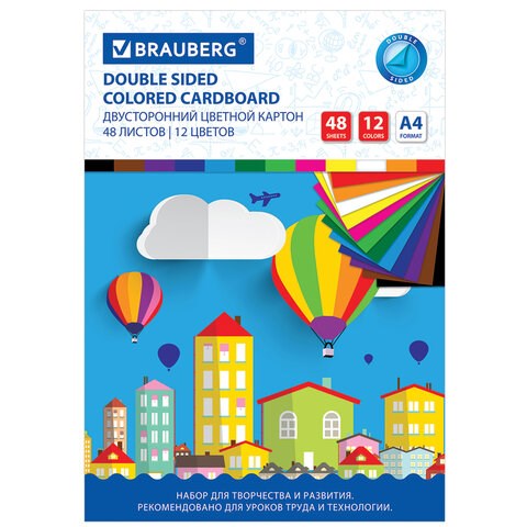 Немелованный двусторонний картон окрашивается непосредственно в процессе изготовления и обладает плотностью 180 г/м2. Может использоваться, начиная с трехлетнего возраста. Картон легко режется ножницами, сгибается и клеится. Внутренний блок состоит из 48 листов формата А4 (210х297 мм) и 12 цветов (каждый цвет - по 4 листа).