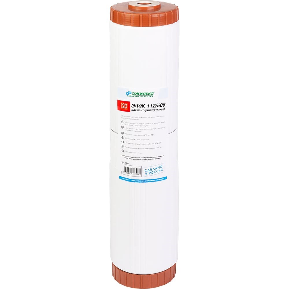 Элемент фильтрующий предназначен для очистки воды от растворенного железа, марганца, сероводорода. Очищающий материал - смесь сорбентов АС и МС.Ресурс картриджа - 60000 или 12 месяцев
