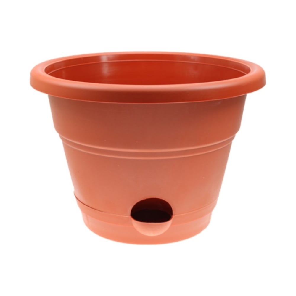 Кашпо с поддоном ФлораПласт Венеция 15 терракотовое, 1 л 000922 предназначено для выращивания небольших декоративных культур. Модель укомплектована поддоном, он собирает излишки воды при поливе и предотвращает загрязнение поверхности. Кашпо выполнено из прочного пластика, устойчивого к воздействию внешней среды, благодаря чему подойдет для размещения внутри и вне помещения.