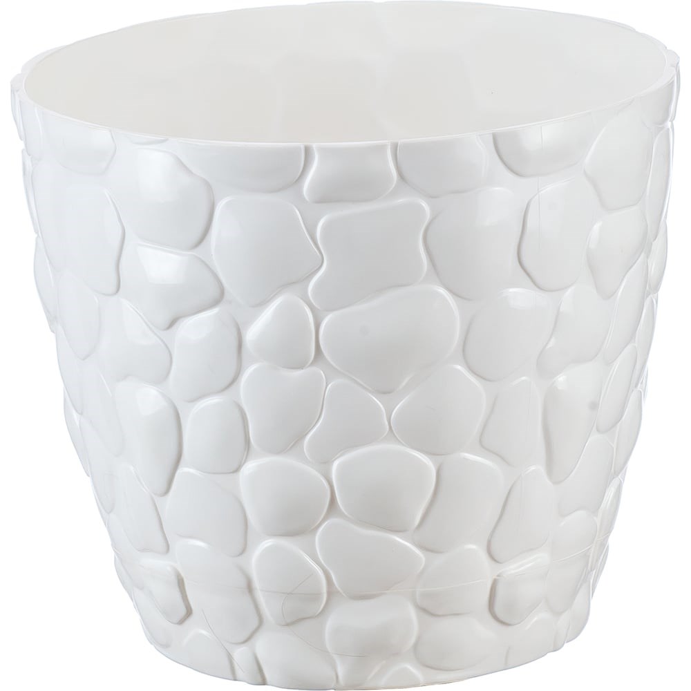 Кашпо IDEA КАМНИ 260 мм, 8 л М 3171 используется для пересадки и выращивания комнатных растений. Стенки модели украшены объемной текстурой, имитирующей морскую гальку. Текстура кашпо продолжается на подставке. Подставка крепится к изделию, создавая единое целое.