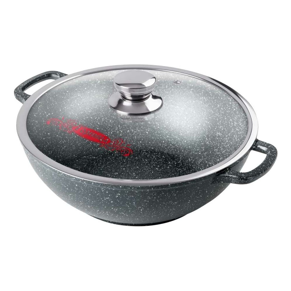 Казан Горница Гранит 280/100 мм, 4 л, с крышкой ТБ11196 подходит для газовых, электрических и стеклокерамических плит, а также для открытого огня. Казаны с цельнолитыми ручками можно использовать в духовом шкафу. Коллекция посуды "Гранит" с улучшенным антипригарным покрытием. Дополнительный слой с мраморным эффектом увеличивает износостойкость и создаёт оригинальный оттенок чёрного мрамора. Литой пищевой алюминий не имеет канцерогенных веществ и посторонних запахов. Толстые стенки и дно обеспечивают равномерное приготовление блюда. Посуда не деформируется при нагревании. Антипригарное покрытие на водной основе без вредных химических соединений: экологично и безопасно. Мелкие царапины не влияют на безопасность антипригарного покрытия. Можно готовить с минимальным количеством масла, его легко мыть. В казане можно жарить разные продукты: мясо, овощи, грибы и т.д. А самые лучшие плов, рагу или лагман получаются только в казане.