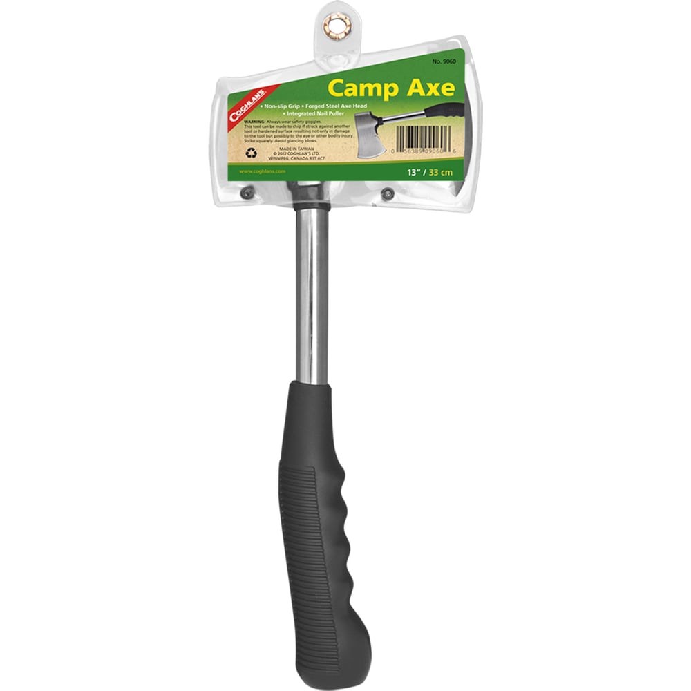 Топор кемпинговый COGHLAN'S идеально подходит для похода, кемпинга, охоты, рыбалки или дачи. Топорище из углеродистой нержавеющей стали легко колет бревна и создает растопку. Благодаря высокопрочной головке и выемке для удаления гвоздей топор отлично подходит и для других работ, например, для вбивания колышков для палатки.Топор отлично сбалансирован, поглощает вибрации при ударе. Увеличенная эргономичная рукоятка удобно лежит в руке и позволяет использовать топор одной рукой, а противоскользящий материал рукоятки препятствует скольжению и дает надёжный ухват даже мокрой рукой.Компактный размер позволяет легко разместить топор в багажнике, рюкзаке или ящике с инструментами.Длина: 33 см. Вес: 0,75 кг.