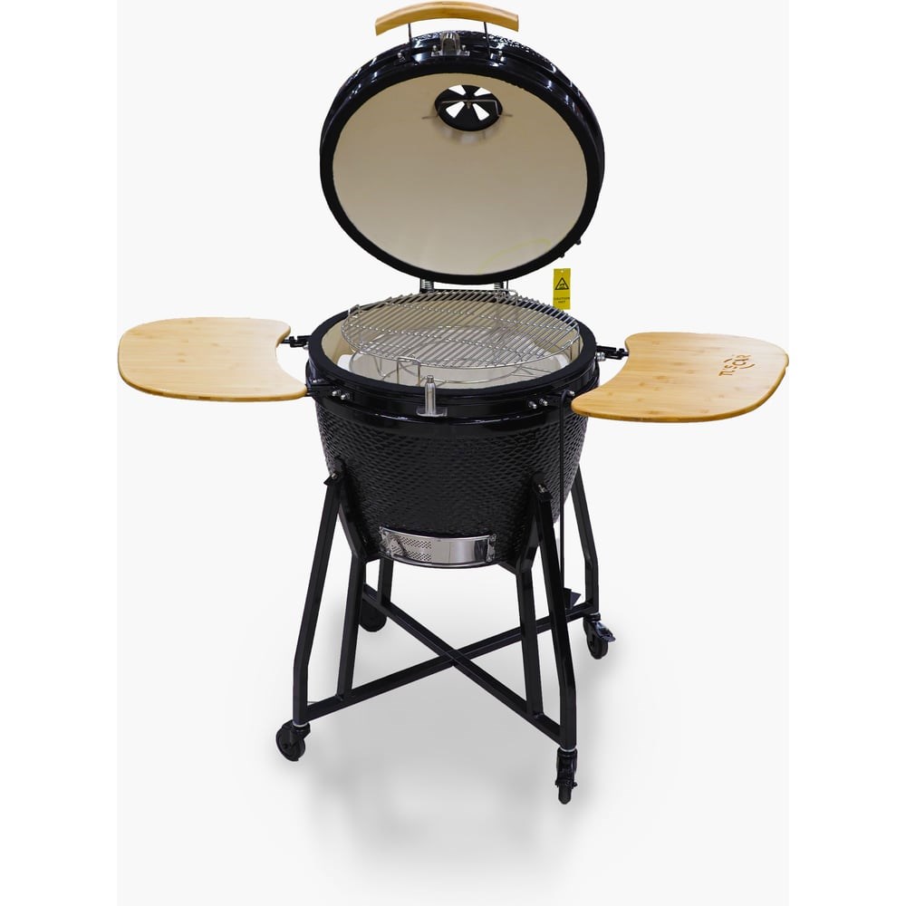 Керамический гриль TUSCAR SKL24Д 201024003-61-00 сочетает популярные способы приготовления на открытом огне - гриль, тандыр, мангал, коптильню, русскую печь и т.п. Отлично подходит для приготовления стейков, шашлыков, ребрышек, смешанных блюд с мясом, копчения рыбы и сала. Также возможно запекать пиццу и хлеб, пироги и различные булочки с начинкой, блюда из фруктов и овощей. Система регулируемой тяги позволяет точно и плавно производить настройку температуры в зоне приготовления. Керамический корпус гриля быстро нагревается, равномерно распределяет тепло, медленно остывает. Двухуровневая система решеток обеспечивает приготовление в разных температурных режимах. Для дополнительного удобства гриль оснащен складными боковыми столешницами и прочной металлической тележкой на колесах.