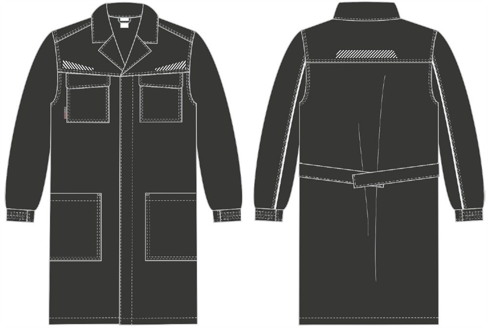 - Светоотражающие элементы: сегментированные термоленты на нагрудных кокетках и спинке, а также кант в локтевых швах для безопасности в условиях недостаточной видимости