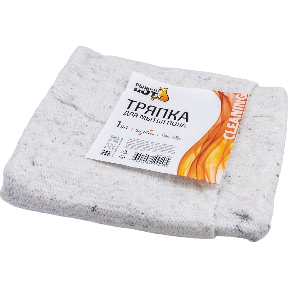 Хлопко-набивная тряпка для пола Рыжий кот 60х80 см, 150 г, 220 г/м2 310286