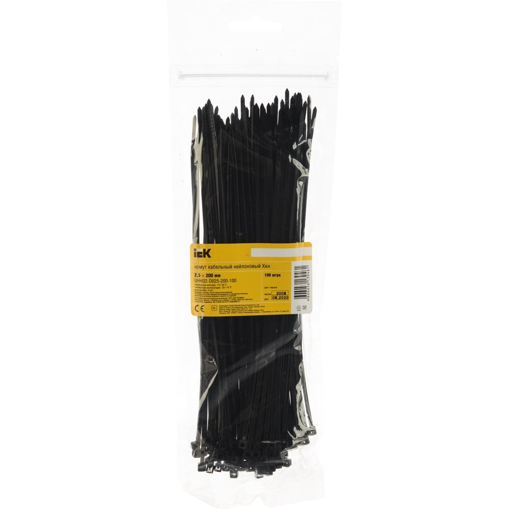 Хомут IEK 2.5х200 нейл. черн. уп.100шт ИЭК UHH32-D025-200-100