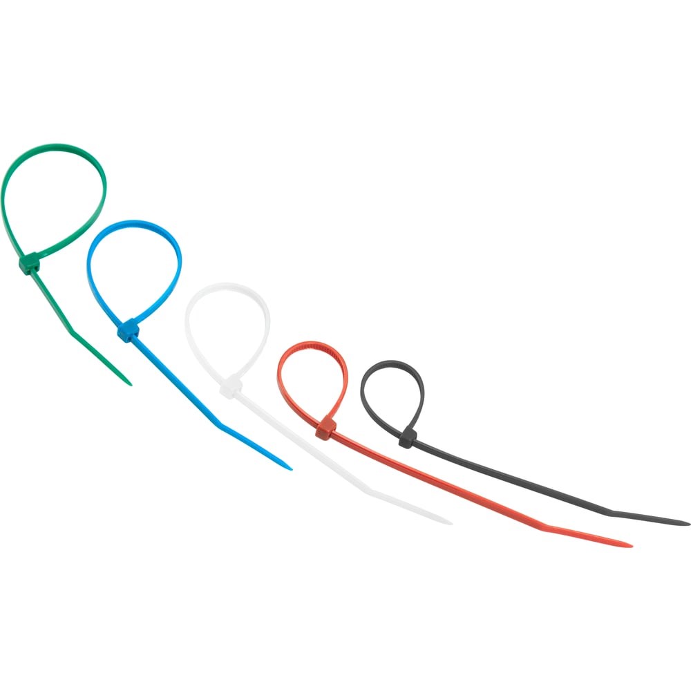 Нейлоновый хомут представляет собой экономичное и легкое крепежное изделие, используемое при проведении электромонтажных работ и организации кабельных систем. С его помощью выполняется фиксация проводов и труб, соединение их в жгут, маркировка и крепление к поверхностям. Стяжки изготовлены из высокопрочного нейлона- 6,6 (полиамида). Материал способен выдерживать большие нагрузки и не подвергается воздействию ультрафиолета, органических растворителей и горюче-смазочных материалов. Для монтажа устройства нужно вставить конец зубчатой ленты в замок и затянуть до образования петли необходимого диаметра. Также можно воспользоваться специальным монтажным инструментом (арт. 12-4524, 12-4521 и 12-4541). В упаковке поставляются 25 стяжек размером 150x2,5 мм черного, белого, красного, синего, зеленого цветов (по 5 шт).