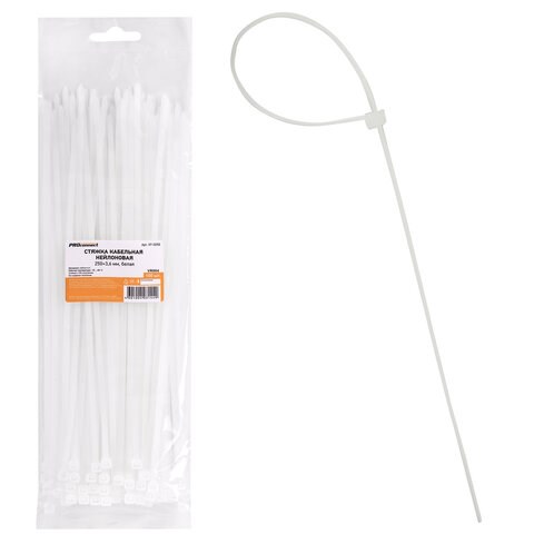 Хомуты (стяжки), нейлоновые, 3,6 мм х 250 мм, комплект 100 шт., белые, европодвес, 57-0250