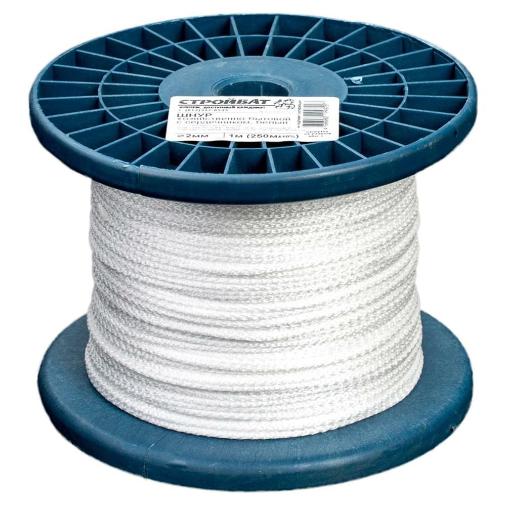 Хозяйственно-бытовой шнур Стройбат с сердечником 2 мм белый 250 м 301430 применяется для хозяйственно-бытовых целей. Устойчив к высоким и низким температурам, поэтому может использоваться в любое время года. Выдерживает многократные изгибы, за счет чего прослужит долго. Шнур не токсичен, благодаря чему безопасен для здоровья.