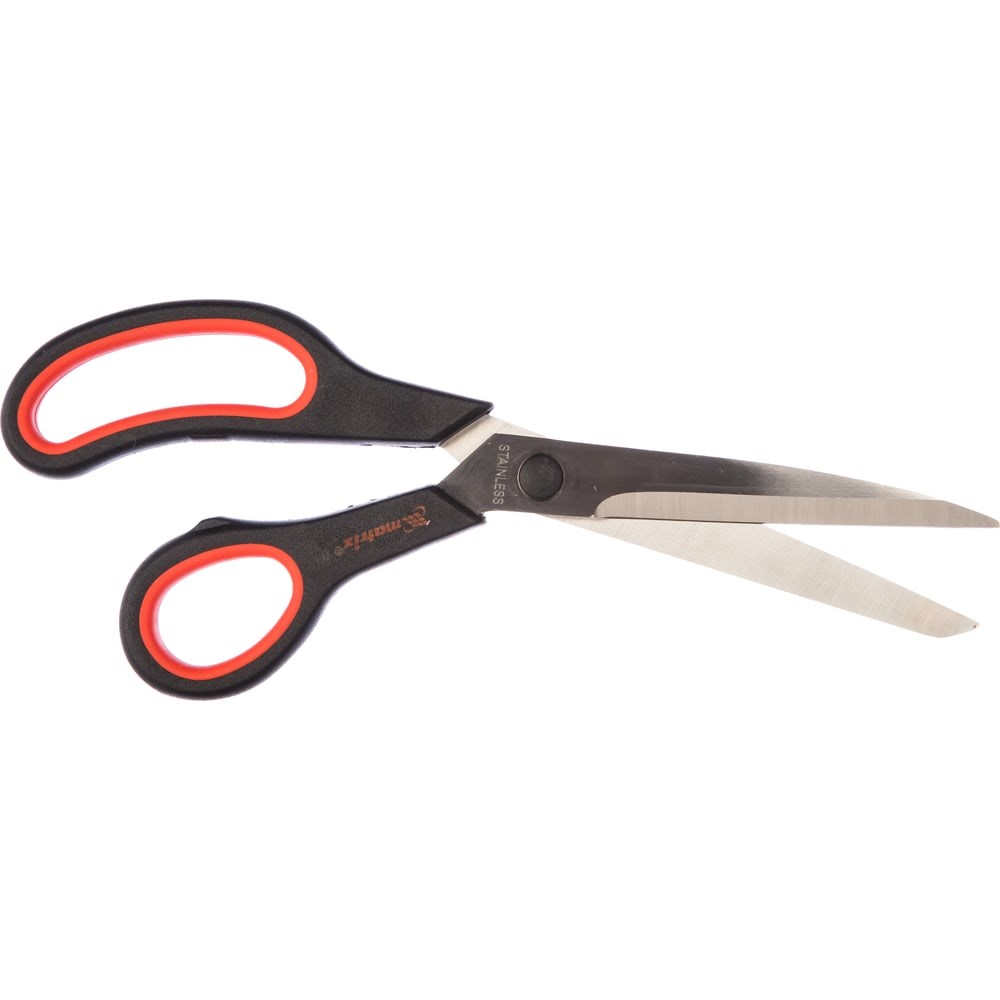 Хозяйственные ножницы MATRIX 79135 применяется для резки бумаги, картона или различной ткани. Лезвия выполнены из прочной стали. Эргономичные изогнутые двухкомпонентные рукоятки обеспечивают надежный захват, не скользят в руке и позволяют резать длинные обойные листы.
