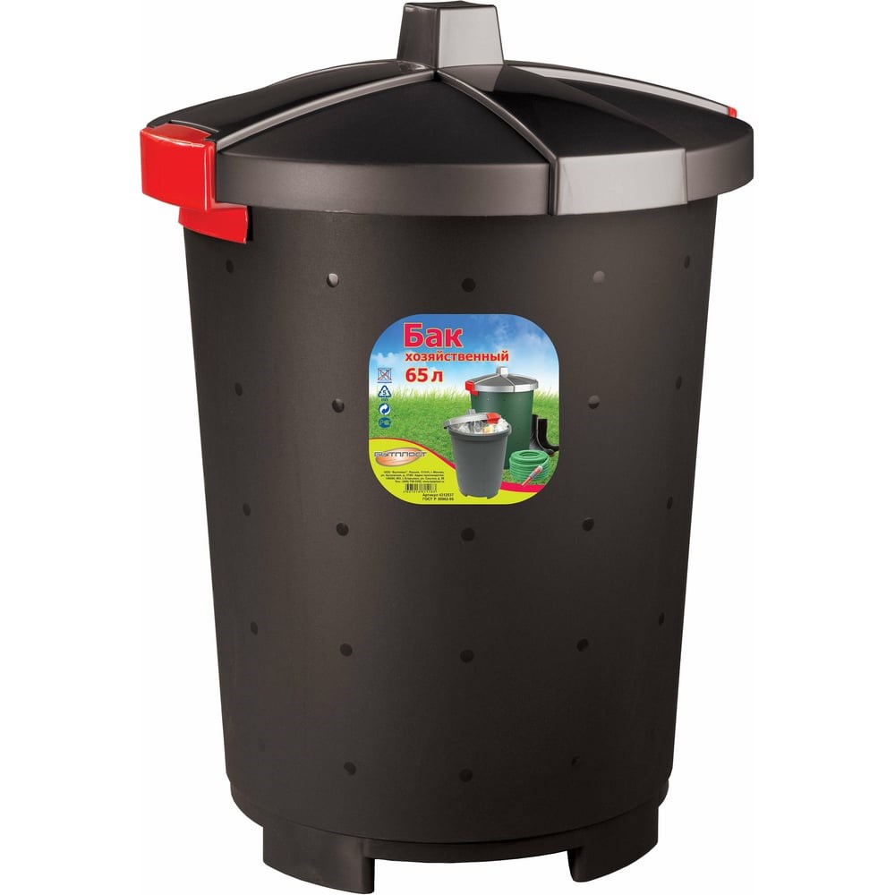 Хозяйственный бак Бытпласт 65 л, черный 431253713 используется для хранения воды и бытового мусора. Имеет надежные застежки и крышку, поэтому не пропускает наружу неприятные запахи. Можно установить как в помещении, так и на улице.