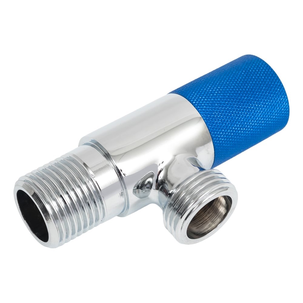 Кран угловой хромированный с отражателем и керамической кранбуксой применяется в качестве запорной арматуры для подключения санитарно-технических приборов (смывного бачка, стиральной или посудомоечной машины) к внутриквартирному транзитному трубопроводу. Может использоваться на трубопроводах, транспортирующих жидкости, неагрессивные к элементам крана, с давлением до 10 бар и температурой до +80°С. Угловые краны с керамической буксой отличаются малым углом поворота рукояти затвора и плавной регулировкой потока воды, которая определяется площадью пересечения совмещенных отверстий в двух плотно прилегающих керамических пластинах. Резьба наружная/наружная на 1/2". Ручка крана круглая, цвет - синий.